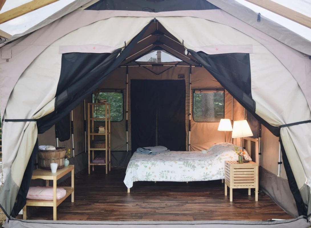 Yurts, tiny cottages, tiny houses, vintage trailers, & pop-up campers (all with electricity) pepper the 14 acre grounds connected by woodsy trails, & there are 5 individual bathrooms with a hot shower, sink, & flush toilet in each. There are 2 fire pits, an organic garden, places for us to share meals, a riverbank screened in porch, hammocks to nap (& swing) in & we are bringing a wood-fired sauna from Sauna Plunge RVA!